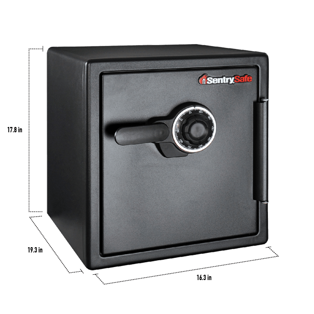 The SentrySafe Combination Water and Fireproof Safe SFW123CS is designed to protect your important documents, digital media and other valuables. Solid steel construction and a pry-resistant hinge bar help protect against unwanted access. This safe also offers UL Classified fire protection and ETL Verified water protection for fire and flood damage and an interior organizer to meet your home and office security needs.