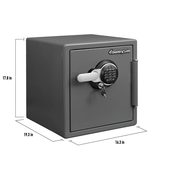 This 2 hour SentrySafe Fire-Resistant Safe combines our longest lasting fire protection with advanced security features. This safe comes with a dual electronic lock with key, 4 large, 1-inch live-locking bolts and a pry-resistant hinge bar for additional security benefits.