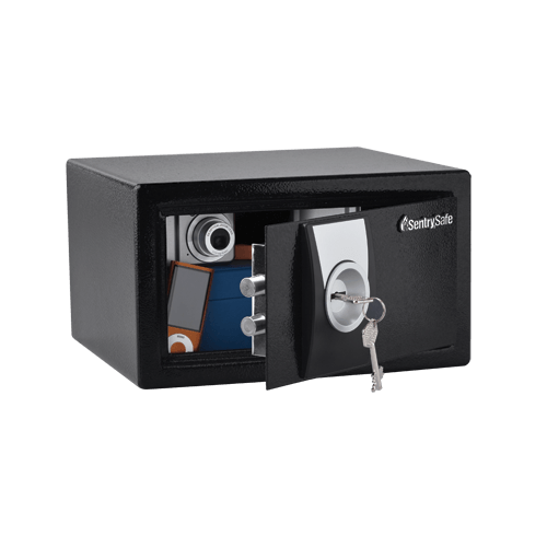 The SentrySafe Key Lock Security Safe X031 is California DOJ Certified for firearm storage and is also ideal for protecting small but precious valuables. Solid steel construction, two live-locking bolts, and a key lock offer added security for your irreplaceable items. The X031 also provides scratch protection with a custom carpet interior.